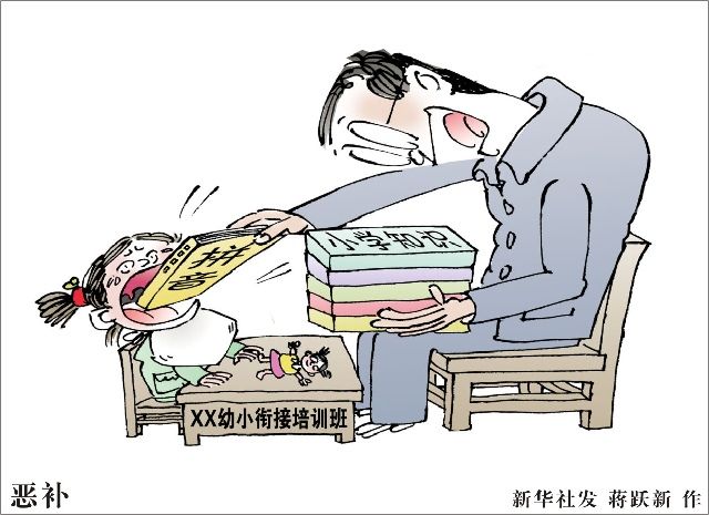 Many parents are worried that their children will "lose at the starting line" and cannot enter "prestigious schools", so they send their children to training classes to "catch up". Xinhua News Agency issued Jiang Yuexin’s work